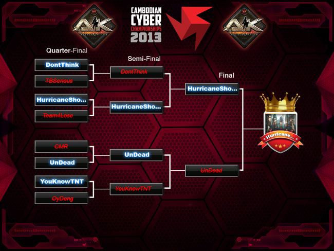 | B2 | 10/11/13 | 14:05-14:35 | UnDead | 5 | VS | 2 | YouKnowTNT |