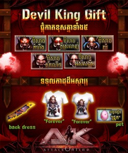 ផ្គុំសំភារៈទទួលបានកាដូពិសេស: បន្ថែមលើអ្វីដែលប្រិយមិត្តទាំងឡាយពិតជាចង់បាននោះ AK Online ក៏បានរៀបចំកាដូពិសេសជូនប្រិយមិត្តដោយលោកអ្នកគ្រាន់តែស្វែងរក Items អោយបានគ្រប់ប្រាំមុខតែប៉ុណ្ណោះ។