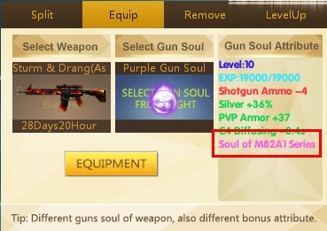 បើអ្នកចង់បំបែកកាំភ្លើងដើម្បីយកត្បូងនោះអ្នកត្រូវចូលទៅ Function Split ការបំបែកកាំភ្លើងដើម្បីយក Soul Fragment ឬ Gun Soul(ត្បូង) គឺអាស្រ័យទៅលើប្រភេទកាំភ្លើងនីមួយៗ មើលឧទាហរណ៍ខាងក្រោម៖