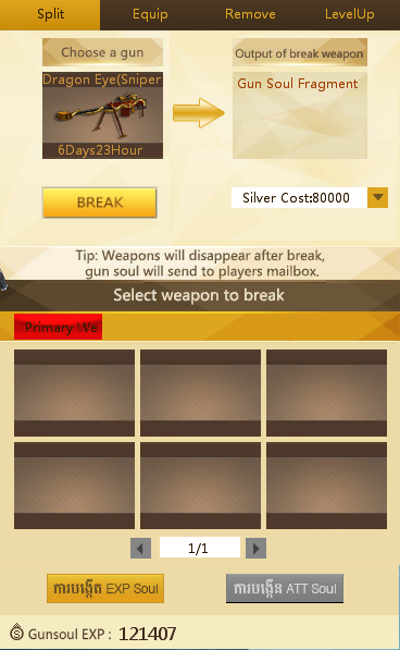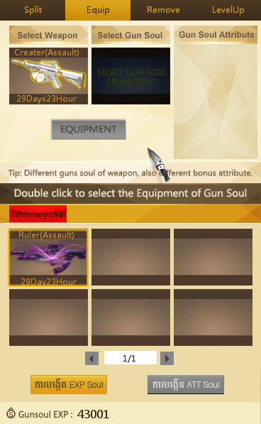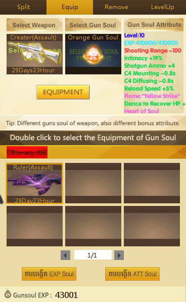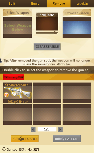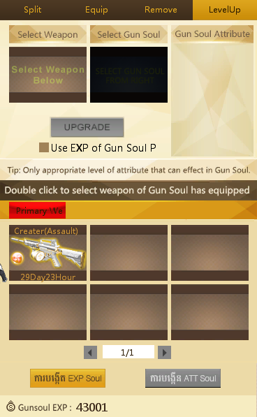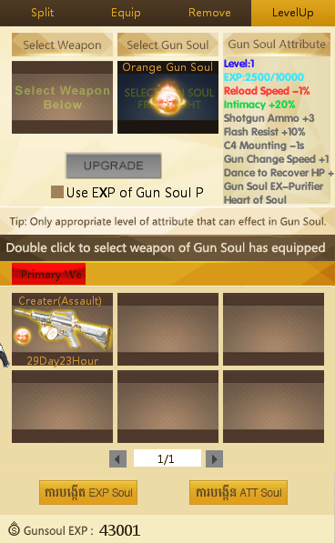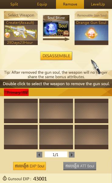 មុខងារនេះសម្រាប់ឲ្យយើងធ្វើការដាក់ Soul ចូលទៅក្នុងកាំភ្លើងរបស់យើង