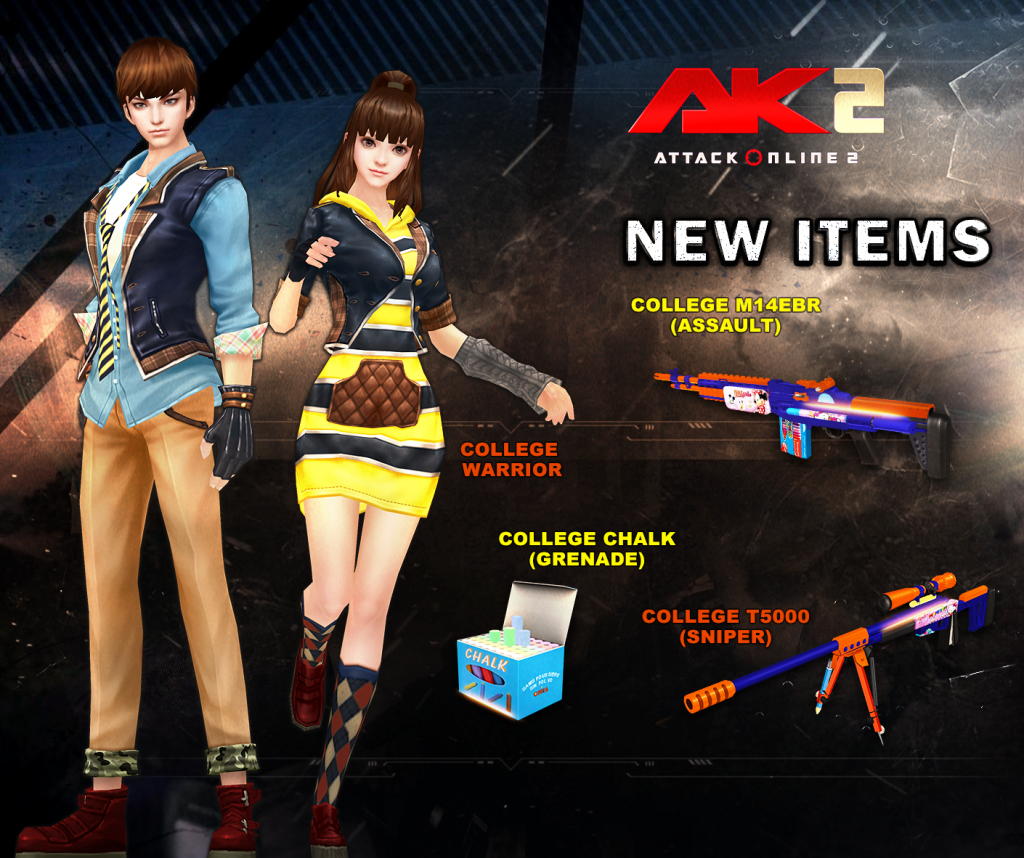 • College Chalk(Grenade): Large Explosion Range, High Damage, Powerful Pressing Force, Small Grenard