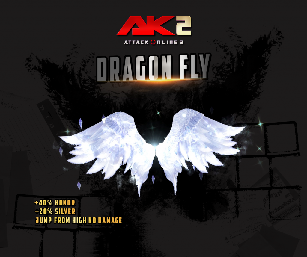Dragon Fly(Backdress)(១៨០ថ្ងៃ): Honor +40%,  Silver +20%,  Jump No Damage