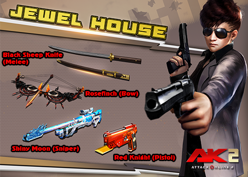 គ្រប់សម្ភារៈក្នុង Jewel Houseត្រូវបានប្តូរថ្មីទាំងអស់។​ ខាងក្រោមនេះជាសម្ភារៈថ្មីទាំង៩ អ្នកទាំងអស់គ្នាអាចប្តូរសម្ភារៈទាំង៩ខាងលើម្តងមួយៗរហូតទាល់តែអស់ដោយចៃដន្យ(Random)ដែលមានដូចជា៖ -Shiny Moon(Sniper) (សព្វាវុធផ្កាយ ៨កន្លះ) -Red Knight(Pistol) -Black Sheep Knife(Melee) -កញ្ចប់ Black Soul: ទទួលបាន Jewel ចាប់ពី ១ ដល់ ៣ រួមនិង Black Soul Axe(Melee)(៣ថ្ងៃ ឬ៧ថ្ងៃ​ ឬ១៥ថ្ងៃ) ឬ Black Soul M60(H-Machinegun)(៣ថ្ងៃ ឬ៧ថ្ងៃ​ ឬ១៥ថ្ងៃ)​ ឬ Black Soul FRB(Assault) ឬ M4-Love(Assault)(៣០ថ្ងៃ)។ -កញ្ចប់ Waltz: ទទួលបាន Jewel ចាប់ពី ២ ដល់ ៤ រួមនិង Waltz Death(Melee)(៣ថ្ងៃ ឬ៧ថ្ងៃ​ ឬ១៥ថ្ងៃ) ឬ Waltz MP161K(Sniper)(៣ថ្ងៃ ឬ៧ថ្ងៃ​ ឬ១៥ថ្ងៃ)​ ឬ Waltz Rose(Assault)(៣ថ្ងៃ ឬ៧ថ្ងៃ​ ឬ១៥ថ្ងៃ) ឬ Soul Fragment LV3(១០០សន្លឹក)។