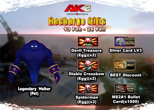 ចាប់ពីថ្ងៃទី១៣ ដល់ថ្ងៃទី២៦ ខែកុម្ភៈ ឆ្នាំ២០១៧ បន្ទាប់ពីការ update នូវ version 2.1.6.505-2.1.6.506 រួចរាល់ហើយអ្នកកម្សាន្ដទាំងអស់អាចបញ្ចូល AK Gold ដើម្បីទទួលបានសព្វាវុធ និងសម្ភារៈពិសេសៗដូចខាងក្រោម៖