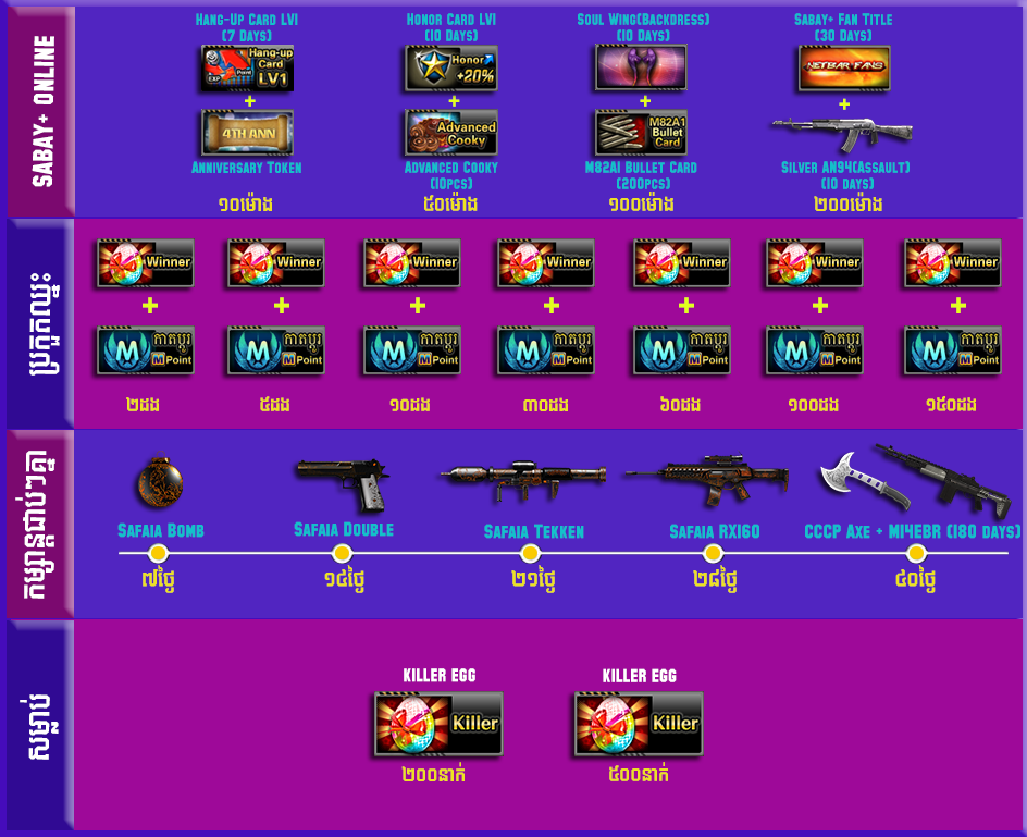 ៥.បញ្ចូល ៨០០ AK Gold ទទួលបាន Honor Card Lv 3(៣០ថ្ងៃ)