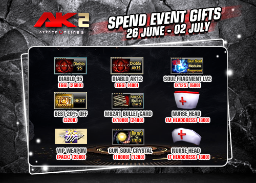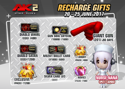 ចាប់ពីថ្ងៃទី២៦ ខែមិថុនា ដល់ថ្ងៃទី២ ខែកក្កដា ឆ្នាំ២០១៧ បន្ទាប់ពីការ Maintenance រួចរាល់ហើយអ្នកកម្សាន្ដទាំងអស់អាចចំណាយ AK Gold ដើម្បីទទួលបានសម្ភារៈពិសេសៗដូចខាងក្រោម៖