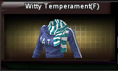 Witty Temperament(M) Feature: +6% Honor The blue-white strip scarf, takes the sky blue as grounding and matches with white alphabets on the coat, brief and elegant. |