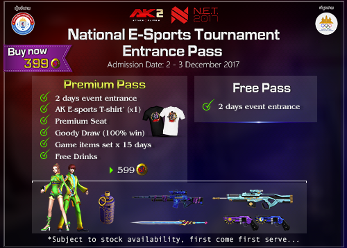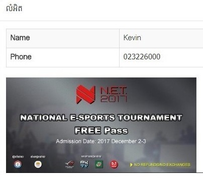 សួស្តីអ្នកកម្សាន្តសេវាកម្សាន្តAK2 នឹងហេ្វនៗដែលគាំទ្រវិស័យកីឡាអេឡិចត្រូនិចកម្ពុជាទាំងអស់ សូមជូនដំណឹងដល់អ្នកទាំងគ្នាអោយបានជ្រាបថា៖ ការចូលរួមទស្សនាការប្រកួតកីឡាអេឡីចត្រូនិចថ្នាក់ជាតិ ២០១៧(NET2017) ដែលនឹងធ្វើឡើងនៅថ្ងៃទី២ ខែធ្នូ ឆ្នាំ២០១៧ខាមុខនេះ នឹងតម្រូវអោយមានសំបុត្រទើបអាចចូលទស្សនាបាន។