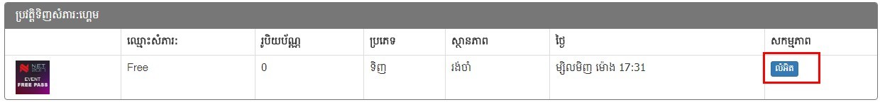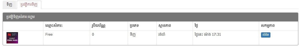 ដើម្បីពិនិត្យមើលការទិញរបស់អ្នកសូមចូលទៅក្នុង “ប្រវតិ្តការទិញ” វានឹងបង្ហាញដូចខាងក្រោម៖