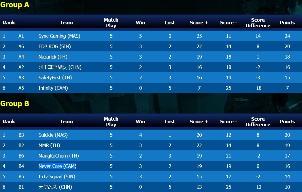 -ជ័យលាភីជើងឯកបានទៅលើក្រុម​ Sync Gaming​ ដែលមកពីប្រទេស ម៉ាឡេស៊ី ដែលបានទទួលរង្វាន់ជាទឹកប្រាក់សុទ្ធ 15,000$