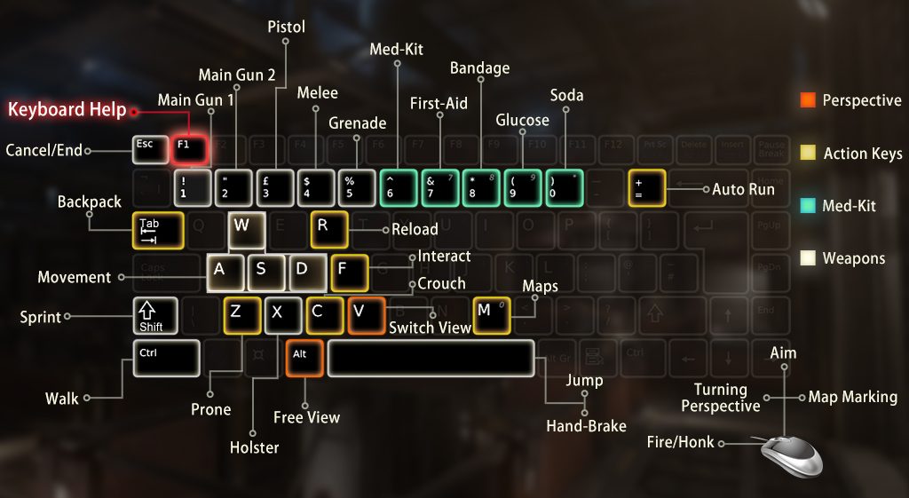 នៅពេលអ្នកបំពាក់ scope លើអាវុធរបស់អ្នកចុច Mouse ខាងស្ដាំដើម្បីតំរង់។ នៅពេលអ្នកចុច【 M 】ដើម្បីបើកផែនទីចុច Mouse ខាងស្ដាំដើម្បីដាក់សញ្ញាសម្គាល់នៅលើផែនទី។ ប្រើជាមួយ【 Alt 】ដើម្បីមើលជុំវិញអ្នកនៅពេលអ្នករត់។