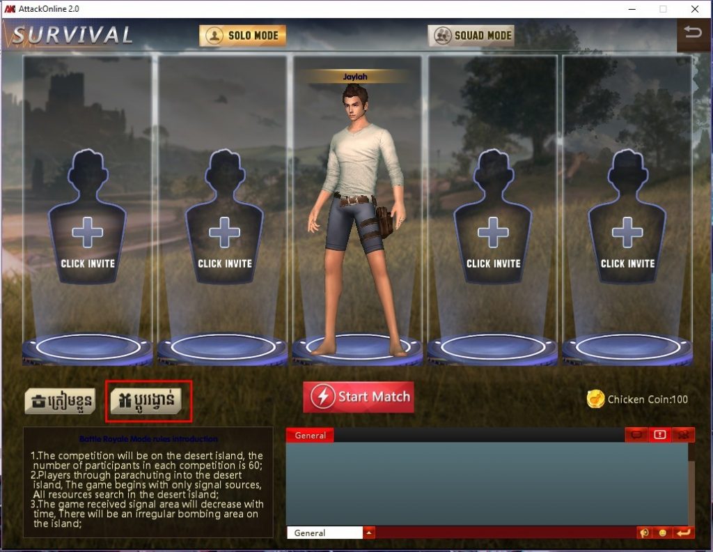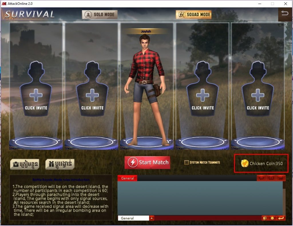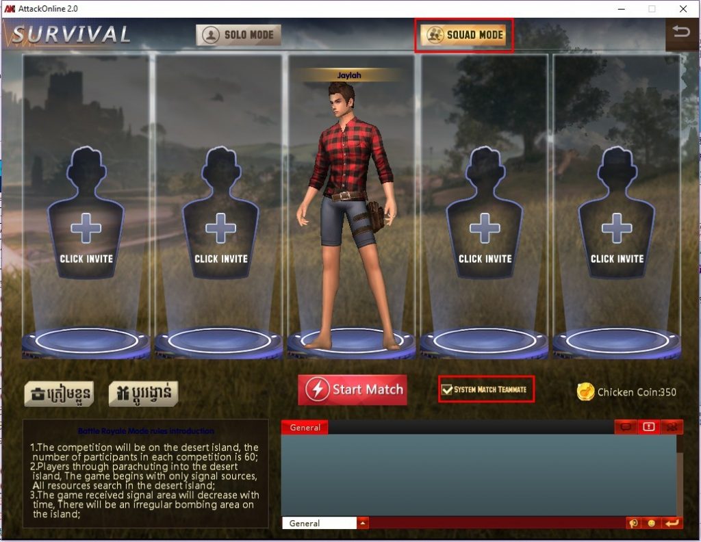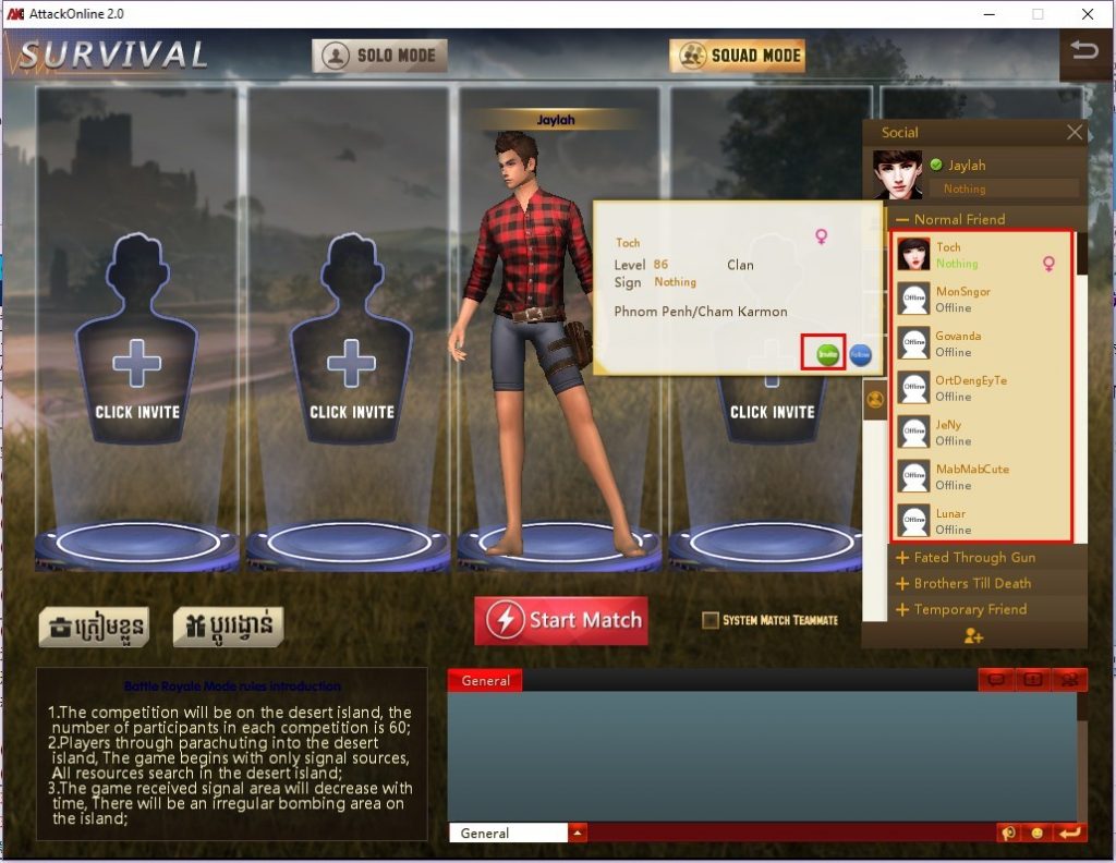 ក្នុងករណីអ្នកចង់ហៅអោយមិត្តមកលេងជាមួយគ្នានោះអ្នកត្រូវជ្រើើសរើសយក SQUAD MODE នោះអ្នកនឹងអាចហៅមិត្តដោយចុចលើប៊ូតុង Click Invite។