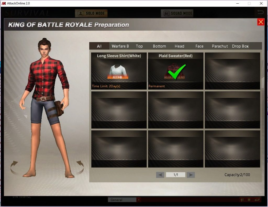 ពេលអ្នកប្តូរប្រអប់រួចហើយសូមចុចចូលទៅក្នុងប៊ូតុងត្រៀមខ្លួន នោះអ្នកនឹងឃើញប្រអប់ដែលអ្នកបានប្តូរនោះជាមិនខាន។ បើកប្រអប់នោះអ្នកអាចមានឱកាសទទួលបានសម្ភារៈ Permanent ដែលសម្រាប់ប្រើក្នុង វគ្គ Battle Royale នេះតែប៉ុណ្ណោះ ដូចជា ខោ អាវ របាំងមុខ…….ជាដើម។