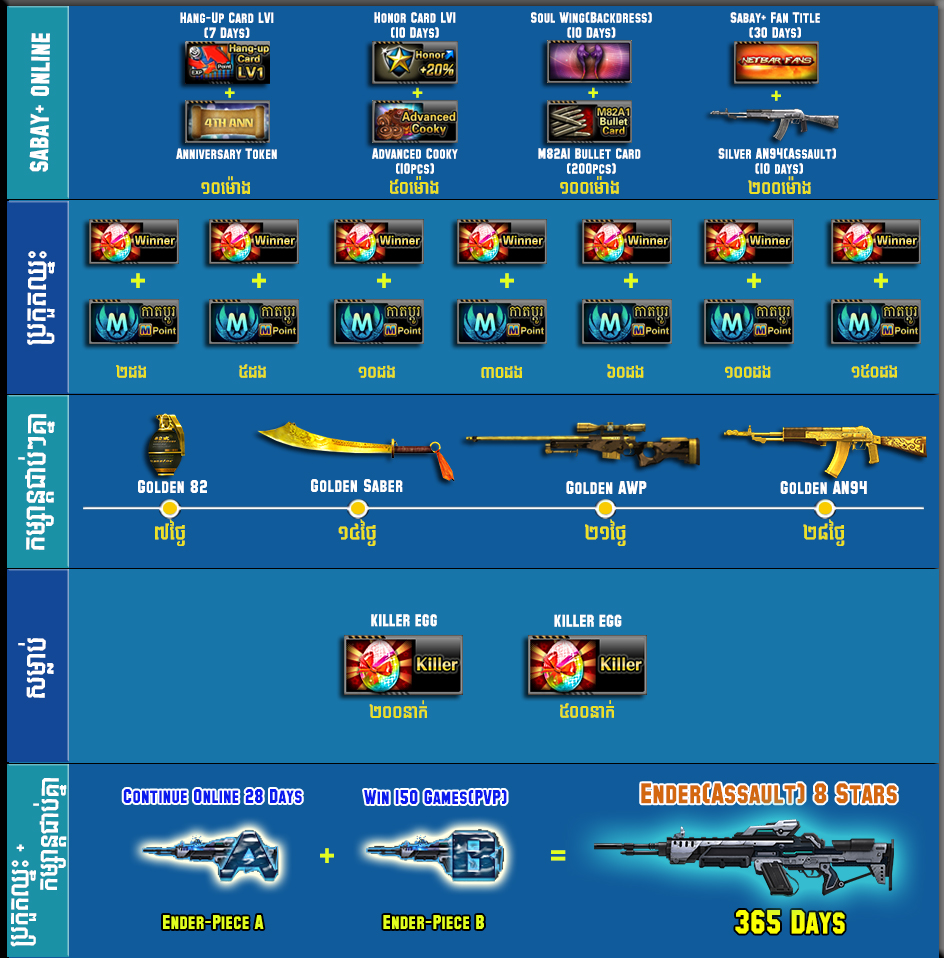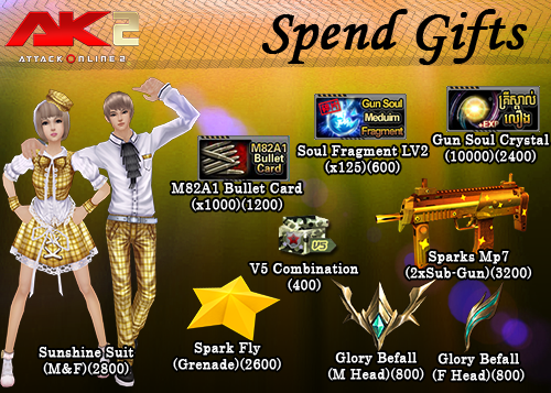 ចាប់ពី ថ្ងៃទី1 ដល់ ថ្ងៃទី14 ខែតុលា ឆ្នាំ2018 បន្ទាប់​​ពី​​ការ ​update ​នូវ ​version 2.1.6.556 ទៅ​ 2.1.6.557  រួចរាល់ហើយអ្នកកម្សាន្ដទាំងអស់អាចចំណាយ AK Gold ដើម្បីទទួលបានសម្ភារៈពិសេសៗដូចខាងក្រោម៖
