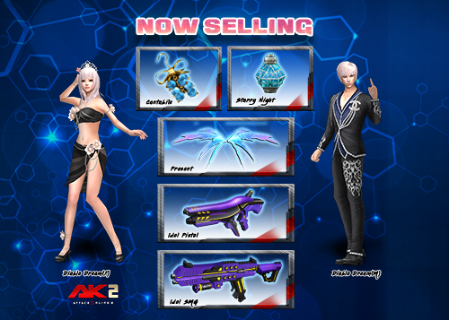 (Starry Night(Remote Thunder), Idol SMG(Sub-Gun), Idol Pistol(Pistol), Cantabile(Eardress), Present(Backdress) និង Diablo Dream(M/F)) រយៈពេល30ថ្ងៃ