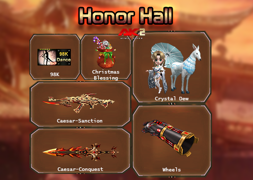 នៅថ្ងៃទី17 ធ្នូ ២០១៨ នឹងមានការupdateរួមជាមួយនឹងសម្ភារៈថ្មីៗ ក៏ដូចជាកញ្ចប់ Knight(Honor Hall) ដែលអ្នកនឹងទទួលបានសម្ភារៈដូចខាងក្រោមនៅពេលដែលអ្នកបើកវា៖