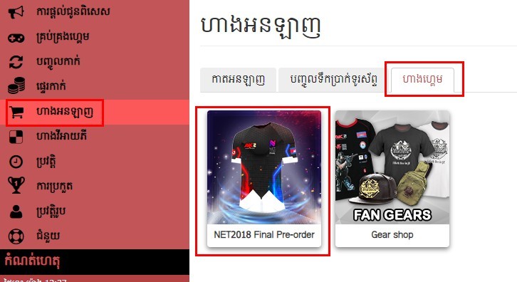 4. បន្ទាប់មកចុចទៅលើពាក្យហាងហ្គេមលោកអ្នកនឹងឃើញ NET2018 Final Jersey ចុចលើប៊ូតុងនោះអ្នកនឹងឃើញផ្ទាំងខាងក្រោមនេះ៖