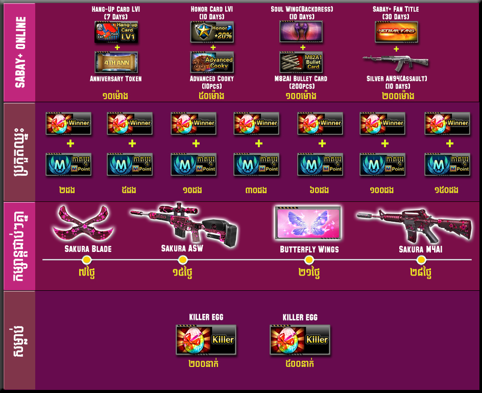 ចាប់ពី ថ្ងៃទី22 មេសា ដល់ថ្ងៃទី5 ឧសភា ឆ្នាំ2019 បន្ទាប់ពីការ update នូវ version 2.1.6.572 ទៅ 2.1.6.573 រួចរាល់ហើយអ្នកកម្សាន្ដទាំងអស់អាចបញ្ចូល AK Gold ដើម្បីទទួលបានសព្វាវុធ និងសម្ភារៈពិសេសៗដូចខាងក្រោម៖
