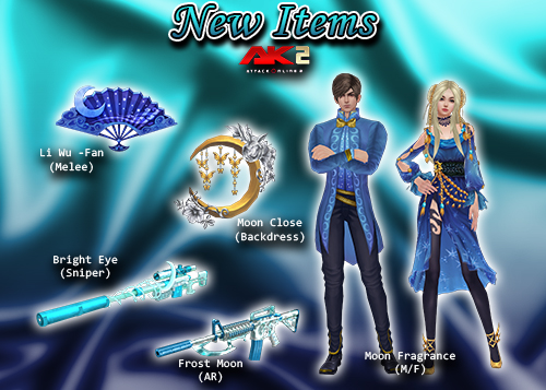 ( Frost Moon(AR) , Bright Eye(Sniper),Li Wu -Fan(Melee),Moon Close(Backdress)និងMoon Fragrance (M/F)) រយៈពេល7ថ្ងៃ