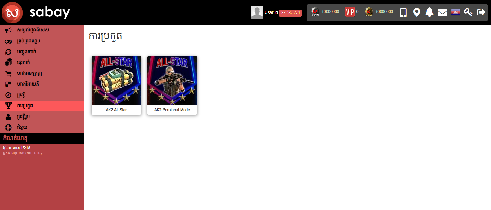 - ជ្រើសរើសពាក្យថា”ការប្រកួត” នឹងឃើញវិញ្ញាសារ ២ ដែលអ្នកអាចរើសបាន AK2 All Star (Bomb,Ghost) & AK2 Personal Mode