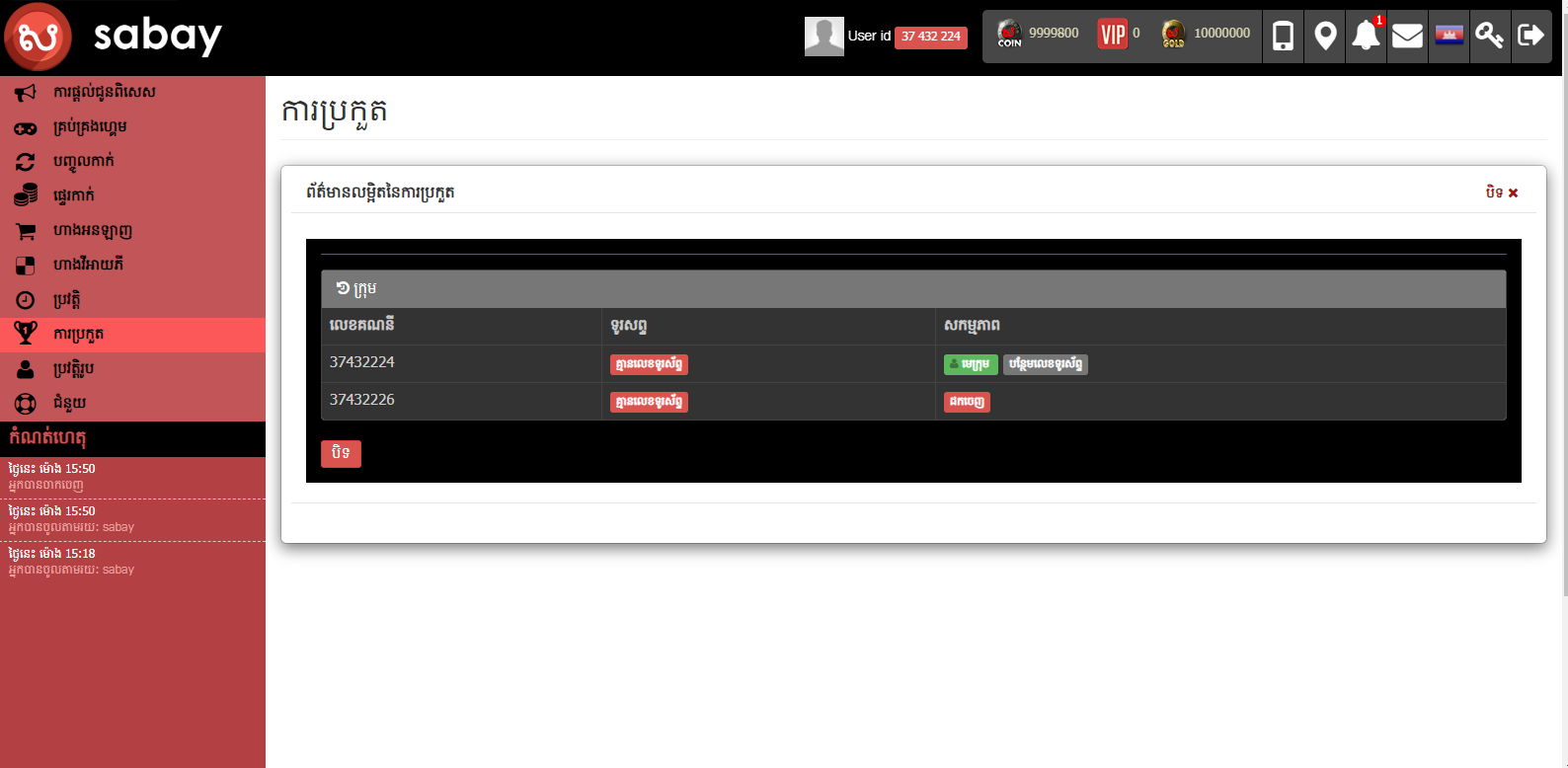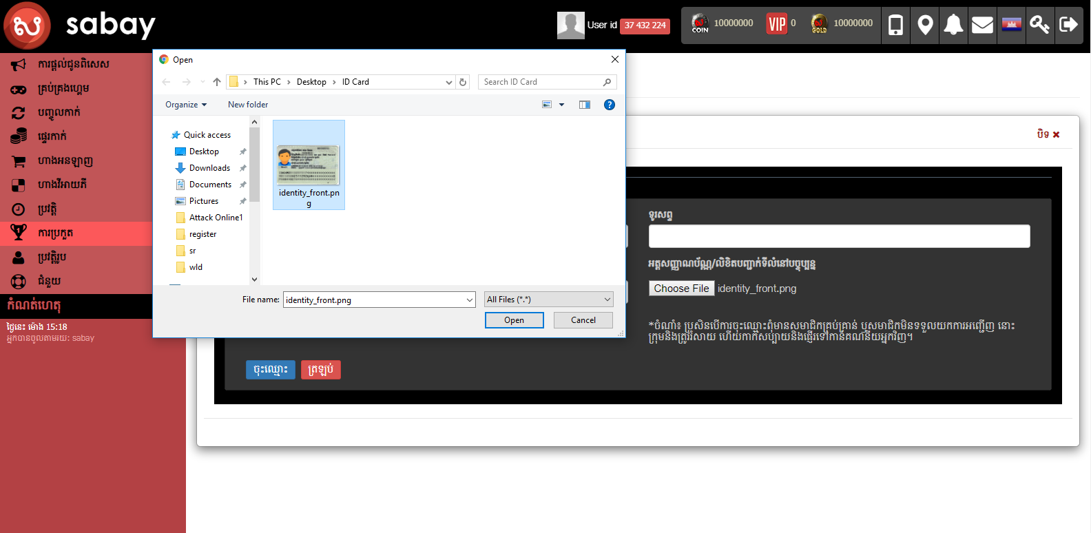 - ចូលទៅកាន់ mysabay.com ហើយ login នូវ Account របស់អ្នក