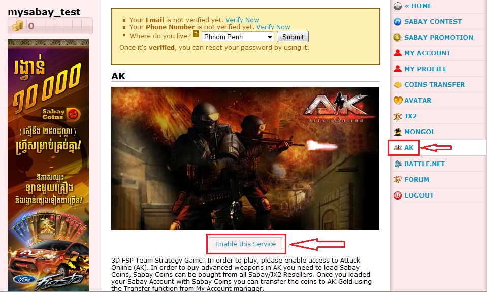– បង្កើត AK Password តាមរយៈ sabay account