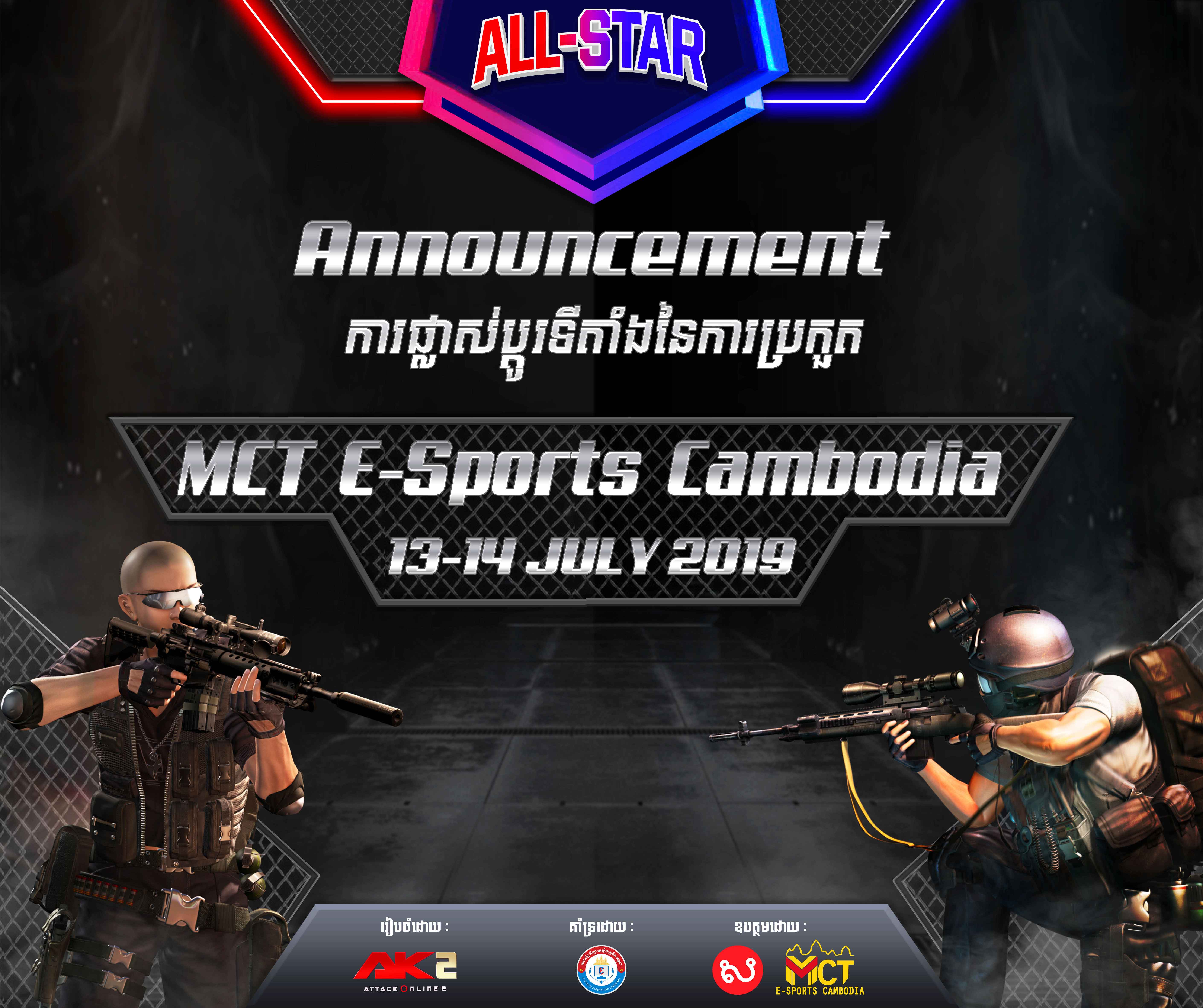 ក្រុមហ៊ុន SABAY នឹងធ្វើការផ្លាស់ប្តូរទីតាំងការប្រកួតពី​ សាលតាំងពិព័រណ៏កោះពេជ្រ ទៅ MCT E-Sports Cambodia សម្រាប់ថ្ងៃដែលធ្វើការប្រកួតវិញប្តូរទៅ​ ​ ថ្ងៃទី 13, 14 ខែ កក្កដា​ ឆ្នាំ 2019 ជំនួសវិញ ដោយមូលហេតុ​ ​ព្រឹត្តិការណ៍តាំងពិព័រណ៏​ CIIME មានការផ្លាស់ប្តូរដោយលើកទៅឆ្នាំក្រោយវិញ​ ដែលនេះជាមូលហេតុដែលមិនអាចអោយការប្រកួតកីឡាអេឡិចត្រូនិក AK2 ALL STAR របស់ក្រុមហ៊ុន SABAY រៀបចំឡើងនៅទីនោះបានឡើយ។ ហេតុនេះទើបខាងក្រុមហ៊ុនមិនចង់អោយមានការខកខានចំពោះការប្រកួតនេះ ក៏សម្រេចផ្លាស់ប្តូរទីតាំង ដោយរៀបចំការប្រកួតនេះនៅ MCT E-Sports Cambodia​  វិញ។ ដូច្នេះហើយយើងខ្ញុំសូមអភ័យទោសចំពោះការផ្លាស់ប្តូរទីតាំងនេះផង។