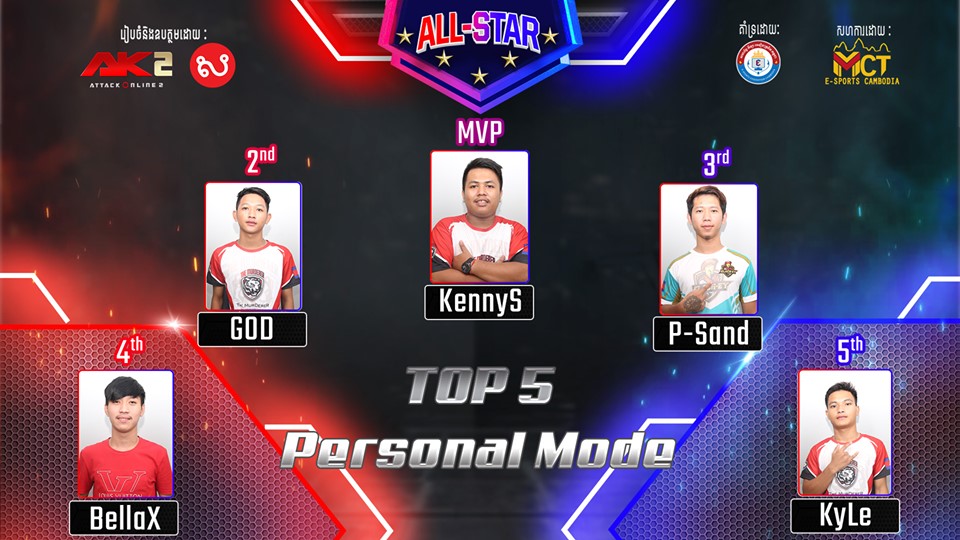 កាលពីថ្ងៃទី13, 14 ខែកក្កដា ឆ្នាំ2019 ការប្រកួតកីឡាអេឡិចត្រូនិច AK2 ALL STAR​ 2019 លើវិញ្ញាសារ Bomb & Ghost និង Personal Mode ដែលបានរៀបចំធ្វើឡើងនៅទីតាំង MCT E-sports Cambodia បានបញ្ចប់សព្វគ្រប់ ដោយយើងបានរកឃើញម្ចាស់ជើងឯក AK2 ALL STAR 2019 និង ម្ចាស់មេដៃ MVP Personal Mode ផងដែរ។ ក្នុងនោះដែរ ក៏មានការចូលរួមពីសំណាក់អ្នកគាំទ្រយ៉ាងច្រើនដែលមកធ្វើជាកំលាំងចិត្តទៅដល់ក្រុមកីឡាករទាំង12  AK2 ALL STAR 2019 និង កីឡាករ Personal តាំងពីដើមរហូតមក។