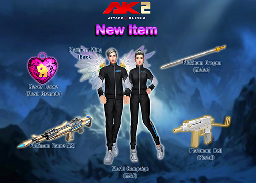 (Platinum Flame(AR),Platunum Hell(Pistol),Platinum Dragon(Melee),Never Leave(Flash Grenade),World Campaign(M/F),Platinum Wing(Back)) រយៈពេល​3ថ្ងៃ