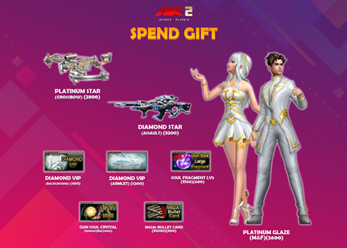 ចាប់ពី ថ្ងៃទី10 ខែកុម្ភះ ឆ្នាំ2020 ដល់ ថ្ងៃទី23 ខែកុម្ភះ ឆ្នាំ2020 បន្ទាប់​​ពី​​ការ ​update ​នូវ ​version 2.1.6.596 ​ទៅ​ 2.1.6.597  រួចរាល់ហើយអ្នកកម្សាន្ដទាំងអស់អាចចំណាយ AK Gold ដើម្បីទទួលបានសម្ភារៈពិសេសៗដូចខាងក្រោម៖