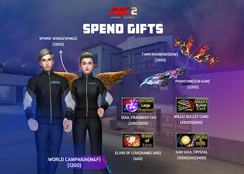 ចាប់ពី ថ្ងៃទី06 ខែមេសា ឆ្នាំ2020 ដល់ ថ្ងៃទី19 ខែមេសា ឆ្នាំ2020 បន្ទាប់ពីការ update នូវ version 2.1.6.601 ទៅ 2.1.6.602 រួចរាល់ហើយអ្នកកម្សាន្ដទាំងអស់អាចចំណាយ AK Gold ដើម្បីទទួលបានសម្ភារៈពិសេសៗដូចខាងក្រោម៖