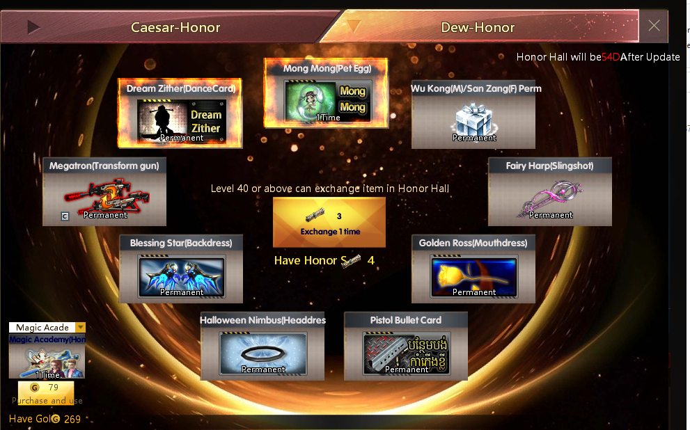 នៅថ្ងៃទី22 មិថុនា 2020 នឹងមានការupdateរួមជាមួយនឹងសម្ភារៈថ្មីៗ ក៏ដូចជាកញ្ចប់ Magic Academy (Honor Hall)ដែលអ្នកនឹងទទួលបានសម្ភារៈដូចខាងក្រោមនៅពេលដែលអ្នកបើកវា៖