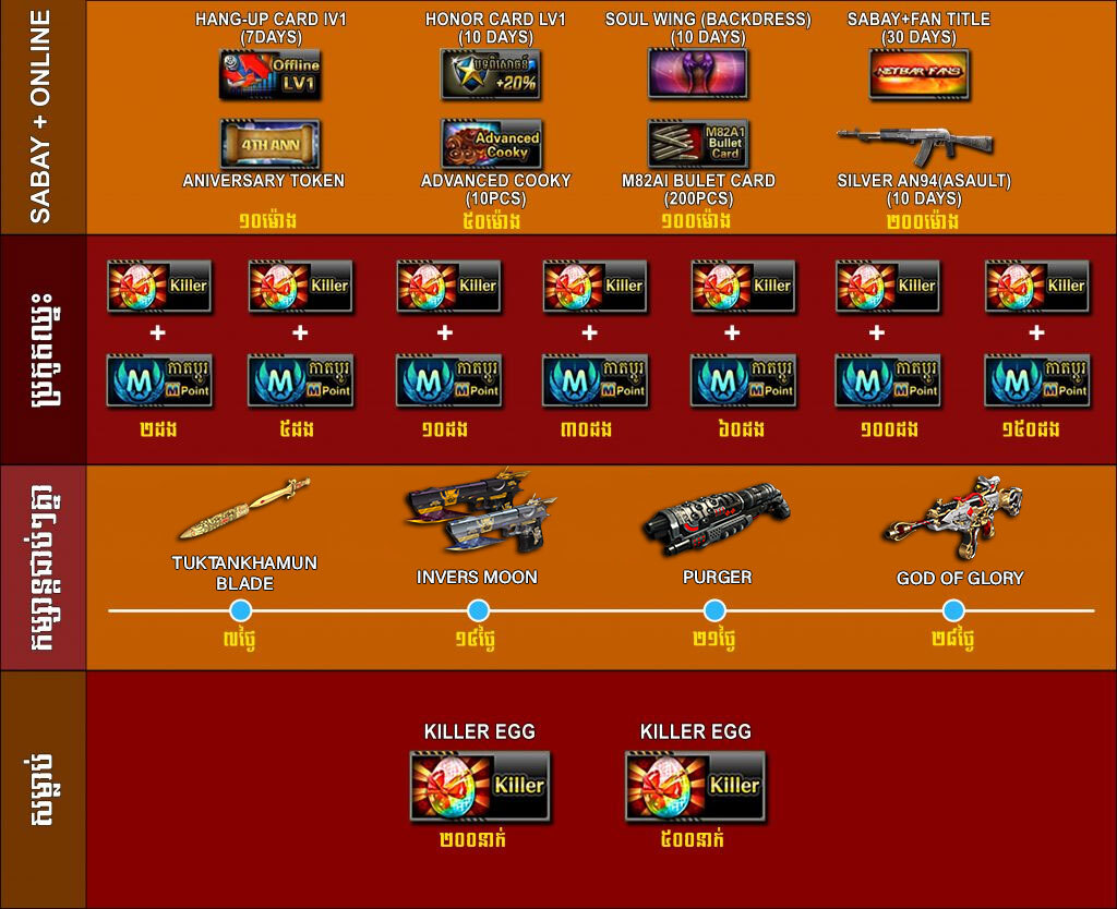 ចាប់ពី ថ្ងៃទី22 មិថុនា ដល់ថ្ងៃទី5 កក្កដា ឆ្នាំ2020 បន្ទាប់ពីការ update នូវ version 2.1.6.612 ទៅ 2.1.6.613 រួចរាល់ហើយអ្នកកម្សាន្ដទាំងអស់អាចបញ្ចូល AK Gold ដើម្បីទទួលបានសព្វាវុធ និងសម្ភារៈពិសេសៗដូចខាងក្រោម៖