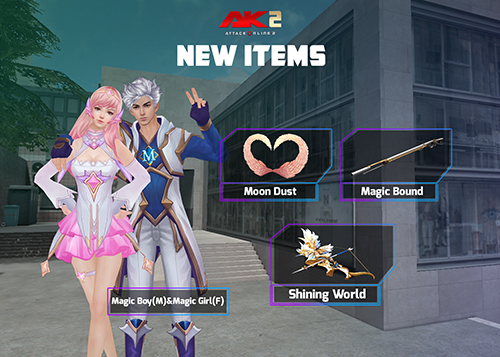 (Magic Bound(Shotgun),Shining World (Bow),Triple Shining(Three-shot arrow card),Moon Dust (Back) and Magic Boy(M)& Magic Girl(F)) រយៈពេល3ថ្ងៃ