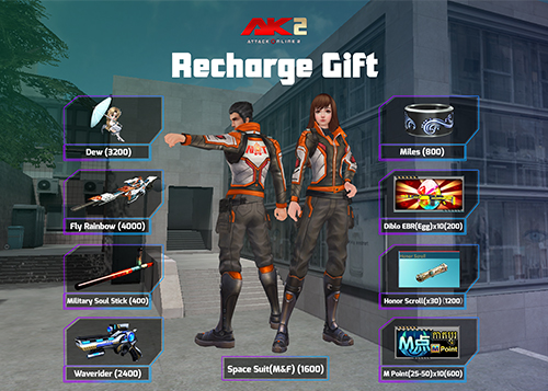 6. 1600 AK Gold ទទួលបាន Space Suit(M/F)(60ថ្ងៃ)និង Space Treasure chest Free Coupon *2