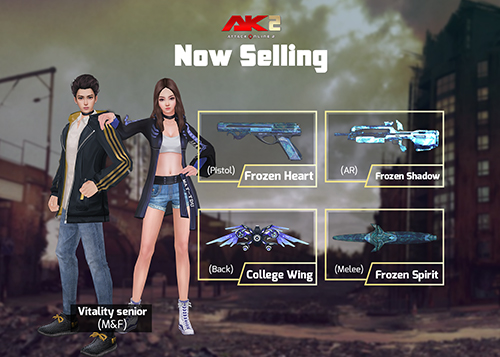 (Frozen Heart(Pistol),Frozen Shadow(AR),Frozen Spirit(Melee),Vitality Senior(M/F),College Wing(Back)) រយៈពេល​​30ថ្ងៃ