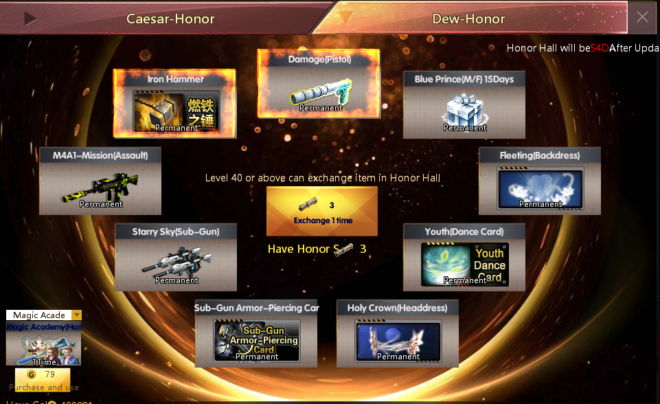 6.​ 1600 AK Gold ទទួលបាន    Adventure(Honor Hall)(*10)និង Space Treasure chest Free Coupon *2