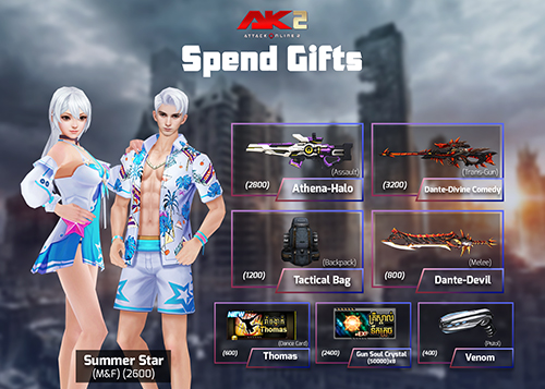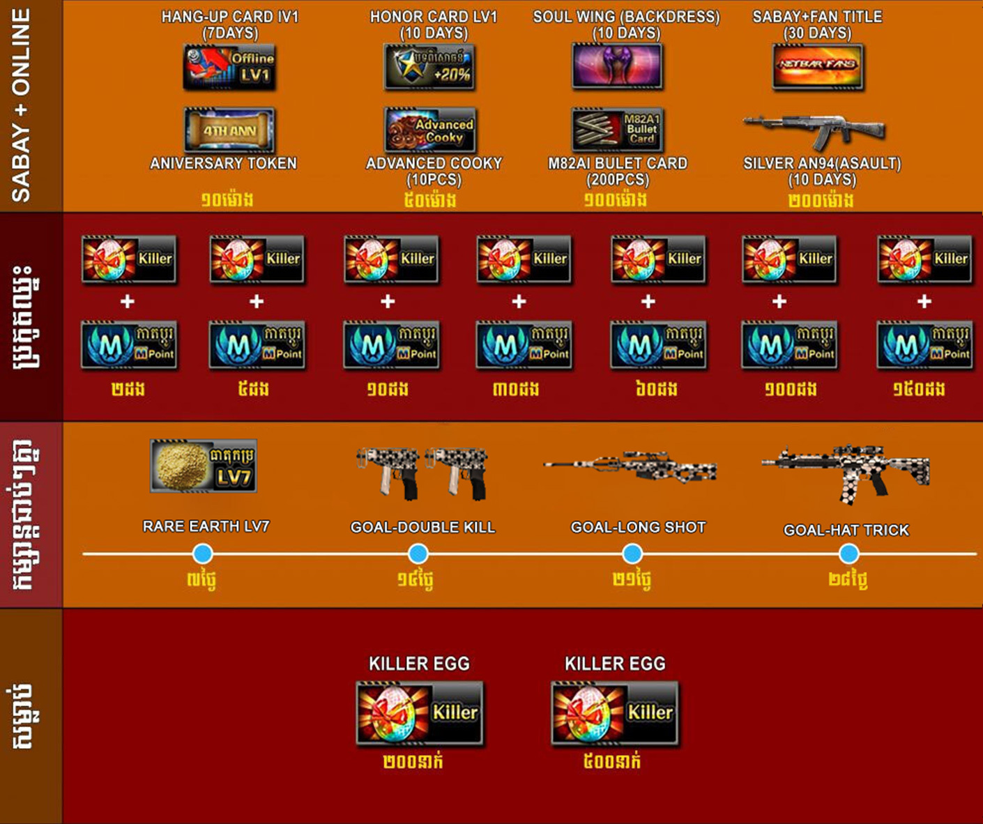 ចាប់ពី ថ្ងៃទី09 ខែវិច្ឆិកា ឆ្នាំ2020 ដល់ ថ្ងៃទី22 ខែវិច្ឆិកា ឆ្នាំ2020 បន្ទាប់ពីការ update នូវ version 2.1.6.631 ទៅ 2.1.6.632រួចរាល់ហើយអ្នកកម្សាន្ដទាំងអស់អាចចំណាយ AK Gold ដើម្បីទទួលបានសម្ភារៈពិសេសៗដូចខាងក្រោម៖