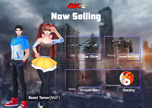 (Star-Shine(AR),Sweed Revolver(Pistol),Destiny(Flash Grenade),Octopus Heart(Back),Beast Tamer(M/F)) រយៈពេល7ថ្ងៃ