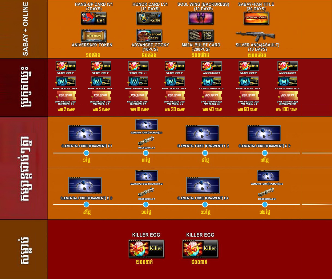 5.​ 1200 AK Gold ទទួលបាន    Double Barrel(H-Machinegun)(180ថ្ងៃ),Honor Scroll *3 , Elemental Force(Fragment)*10និង Space Treasure chest Free Coupon *2