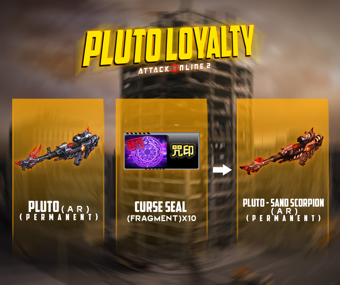 យើងអាចធ្វើការ Upgrade Pluto(AR) ដោយត្រូវការ Curse Seal(Fragment) ដែលអាចទទួលបានពីការEvent ចំណាយ ៖