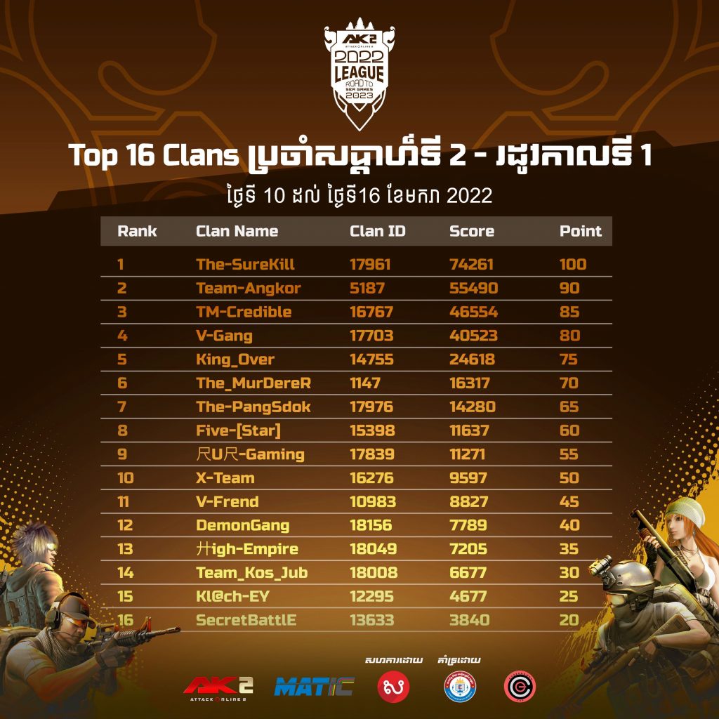 AK2 Team Challenge 16 Clans ប្រចាំតារាងសន្សំពិន្ទុសប្ដាហ៍ទី2
