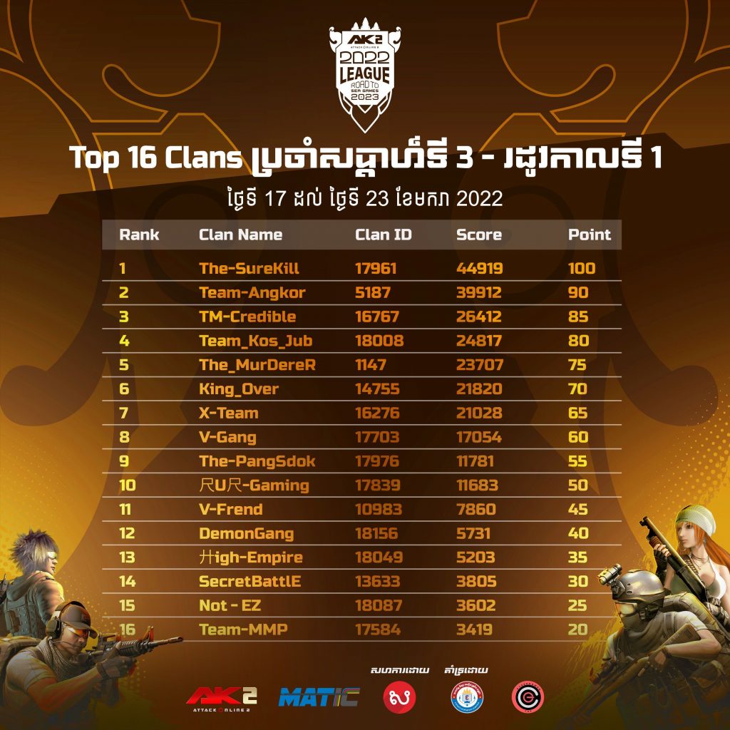 AK2 Team Challenge 16 Clans ប្រចាំតារាងសន្សំពិន្ទុសប្ដាហ៍ទី3