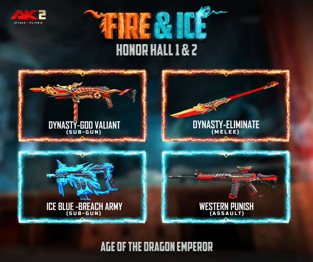 2. 400 AK Gold ទទួលបាន Space treasure chest free coupon*1 + Dynamic (Honor hall)*1 + Phoenix Fire(Melee)Permanent