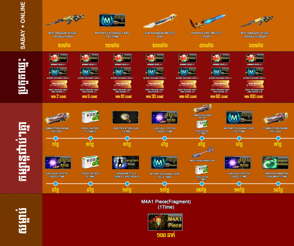 ចាប់ពី ថ្ងៃទី14 ខែមីនា ឆ្នាំ2022ដល់ថ្ងៃទី10 ខែមេសា ឆ្នាំ2022 អ្នកកម្សាន្ដទាំងអស់គ្រាន់តែចូលកម្សាន្ដនឹងទទួលបានរង្វាន់ដូចខាងក្រោម៖