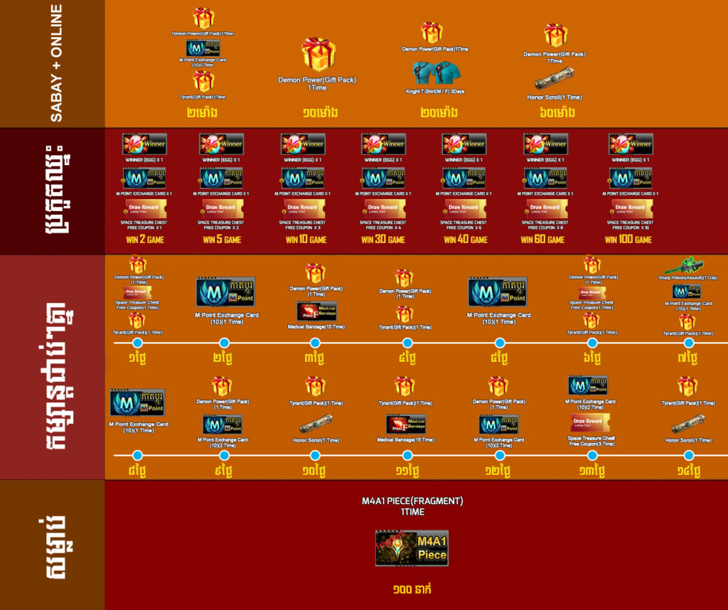 ចំណាំ : បន្ទាប់ពីលោកអ្នកធ្វើការបញ្ចូលគ្រប់ 4000 AK Gold ហើយ , រាល់ការបញ្ចូលបន្ថែម 800 AK Gold ពីលើនេះ លោកអ្នកនឹងអាចទទួលបាន Space Treasure chest Free Coupon *5 , Hornor Scroll *5 , Balrog Fire(Gift pack)*1