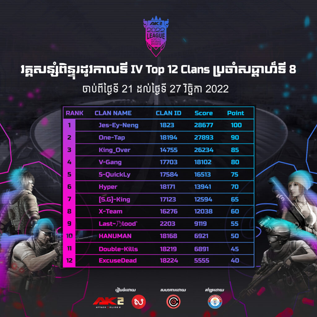 ការប្រកួតកីឡាអេឡិចត្រូនិកAK2 ក្នុងវគ្គជម្រុះដេញពិន្ទុគ្នាក្នុង Team Challenge សប្ដាហ៍ទី8 ត្រូវបានបញ្ចប់ ។