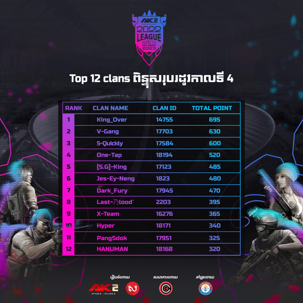 ខាងក្រោមនេះជាតារាងពិន្ទុសរុបទាំង Top 12 Clans ក្នុងរដូវកាលទី 4