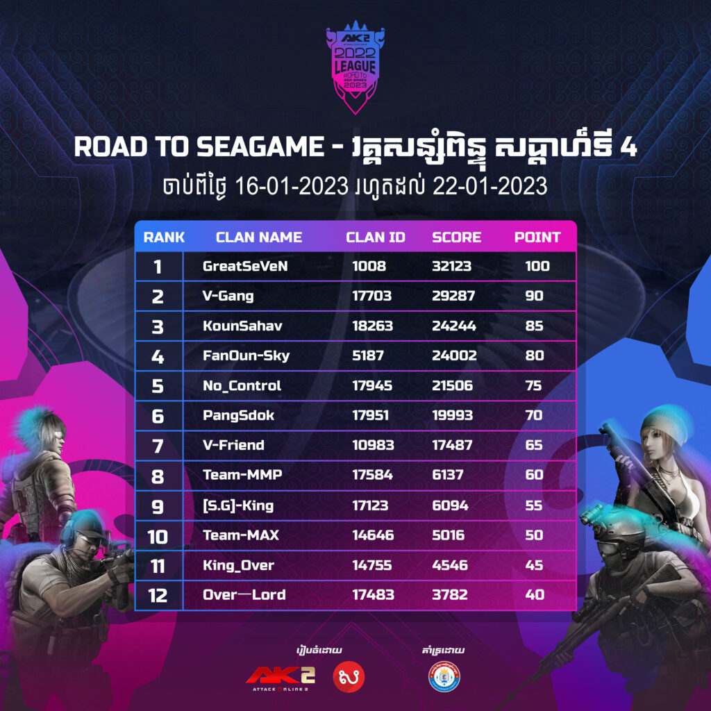 រូបខាងក្រោមជា Top 12 Clans សប្ដាហ៍ទី 4