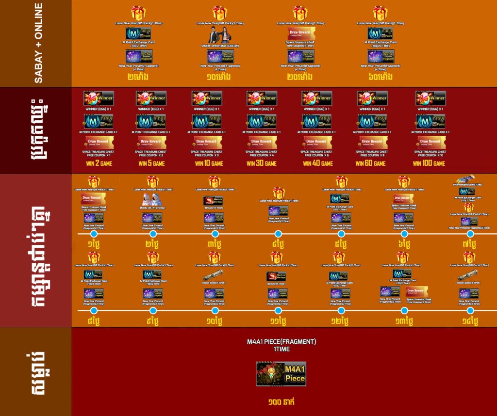 ចាប់ពី ថ្ងៃទី13 ខែកុម្ភះ ដល់ថ្ងៃទី12 ខែមីនា ឆ្នាំ2023 អ្នកកម្សាន្ដទាំងអស់គ្រាន់តែចូលកម្សាន្ដនឹងទទួលបានរង្វាន់ដូចខាងក្រោម៖